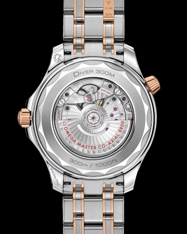 driven by the OMEGA Master Chronometer Calibre 8800, which can be seen through